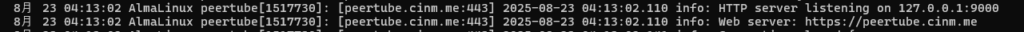 PeerTubeで管理者パスワードを設定していない場合は起動ログから確認できます